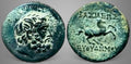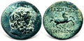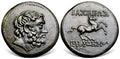 Bearded head of Herakles to right / BAΣΙΛΕΩΣ - EYΘYΔHMOY Horse galloping right.