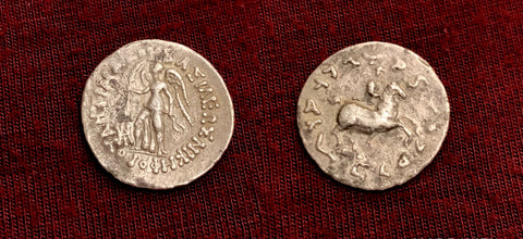 17.8mm 2.39mm. Indian standard. King on horseback right / Nike advancing left holding