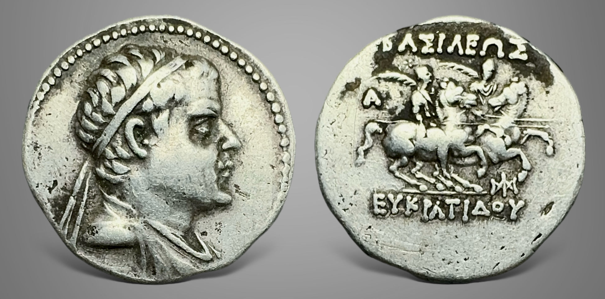 Baktrian Kings. Eukratides I. Circa 170-145 BC. AR Drachm.
