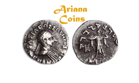 17mm 2.31gm. Indian standard. Diademed and draped bust right / Athena Alkidemos left