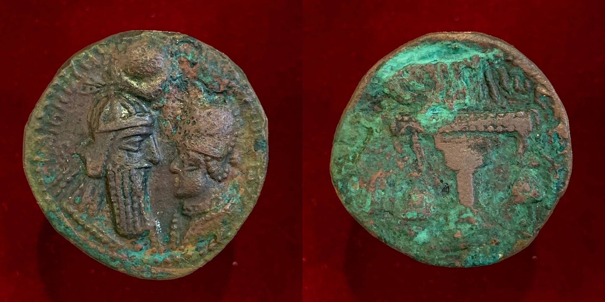 Sasanian Kings. Ardashir I, with Shahpur I. AD 223/4-240. Æ Unit. RARE