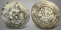 4gm 32.2mm minted in YZ (Yazd). mint dated RY 2 (AD 629)? as cruded. On the Throne at the age of 7