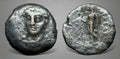 Laureate head of Apollo facing slightly left / Apollo standing left