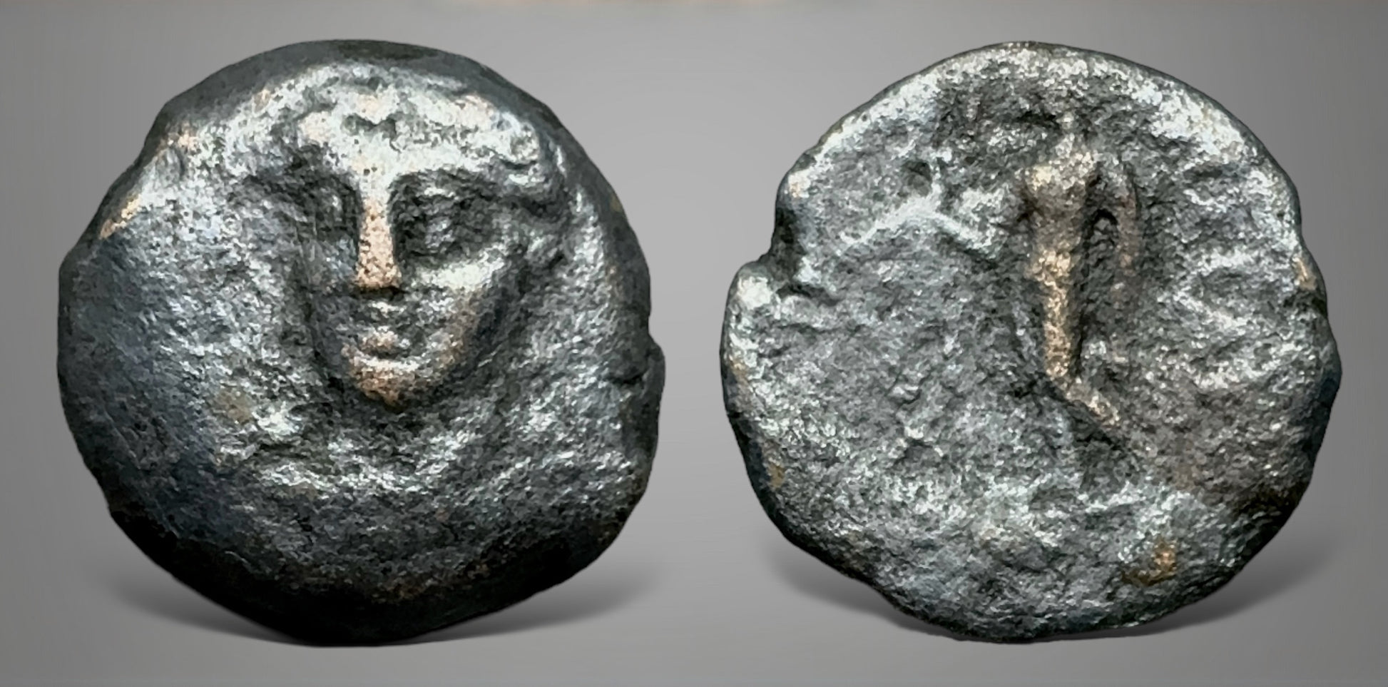 testing arrow and resting left hand on shield set on ground. SC 1178 HGC 9 533 (Large denomination).